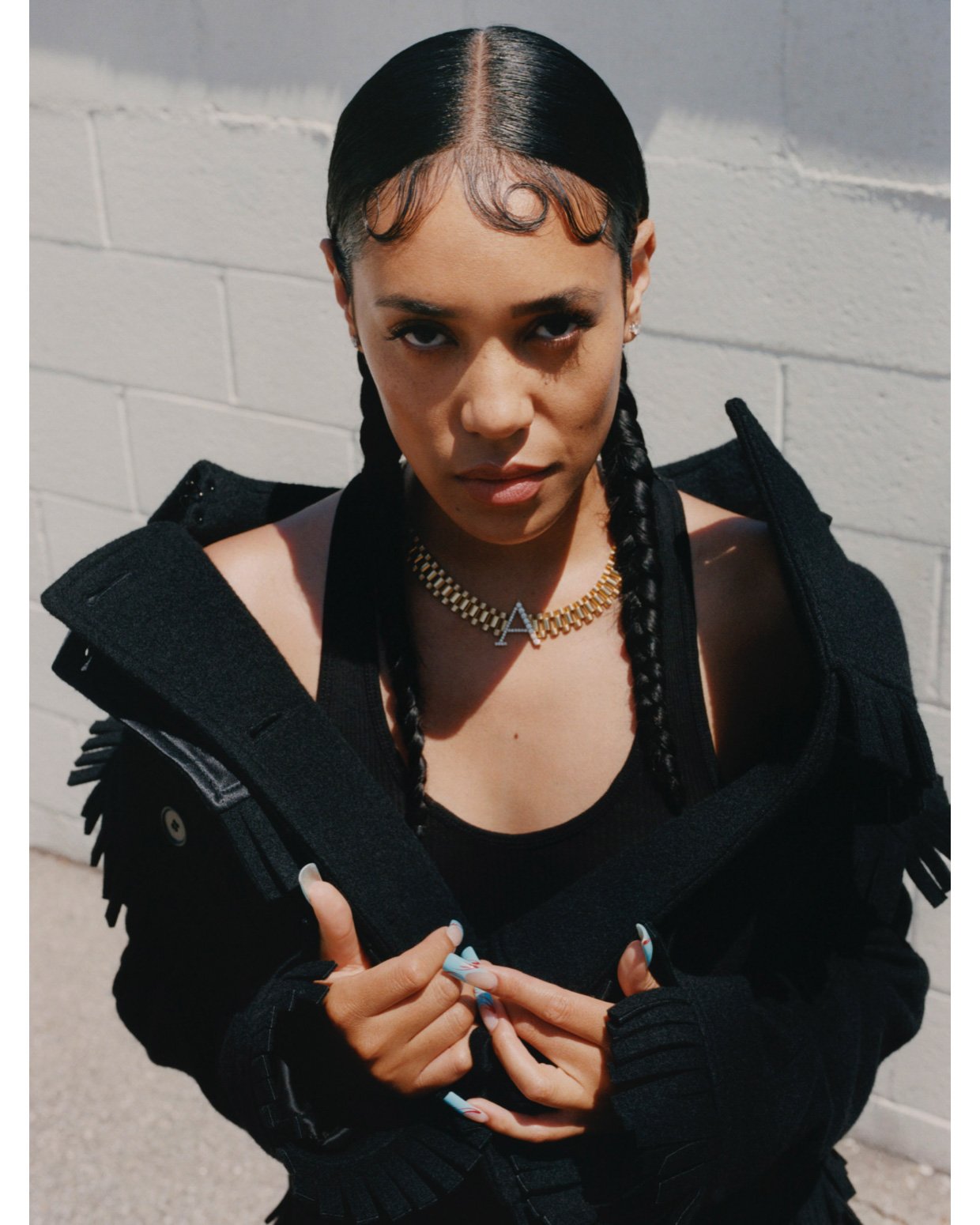 Aleali wears coat BURBERRY. Necklace Aleali’s own.