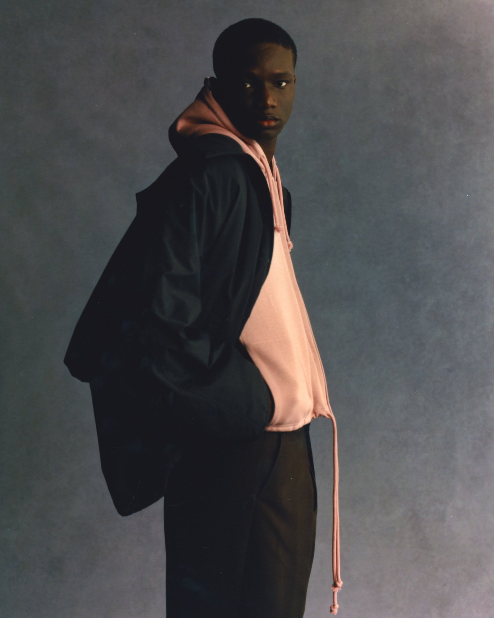 Mamadou wears jacket, hoodie, and pants BLUEMARBLE.
