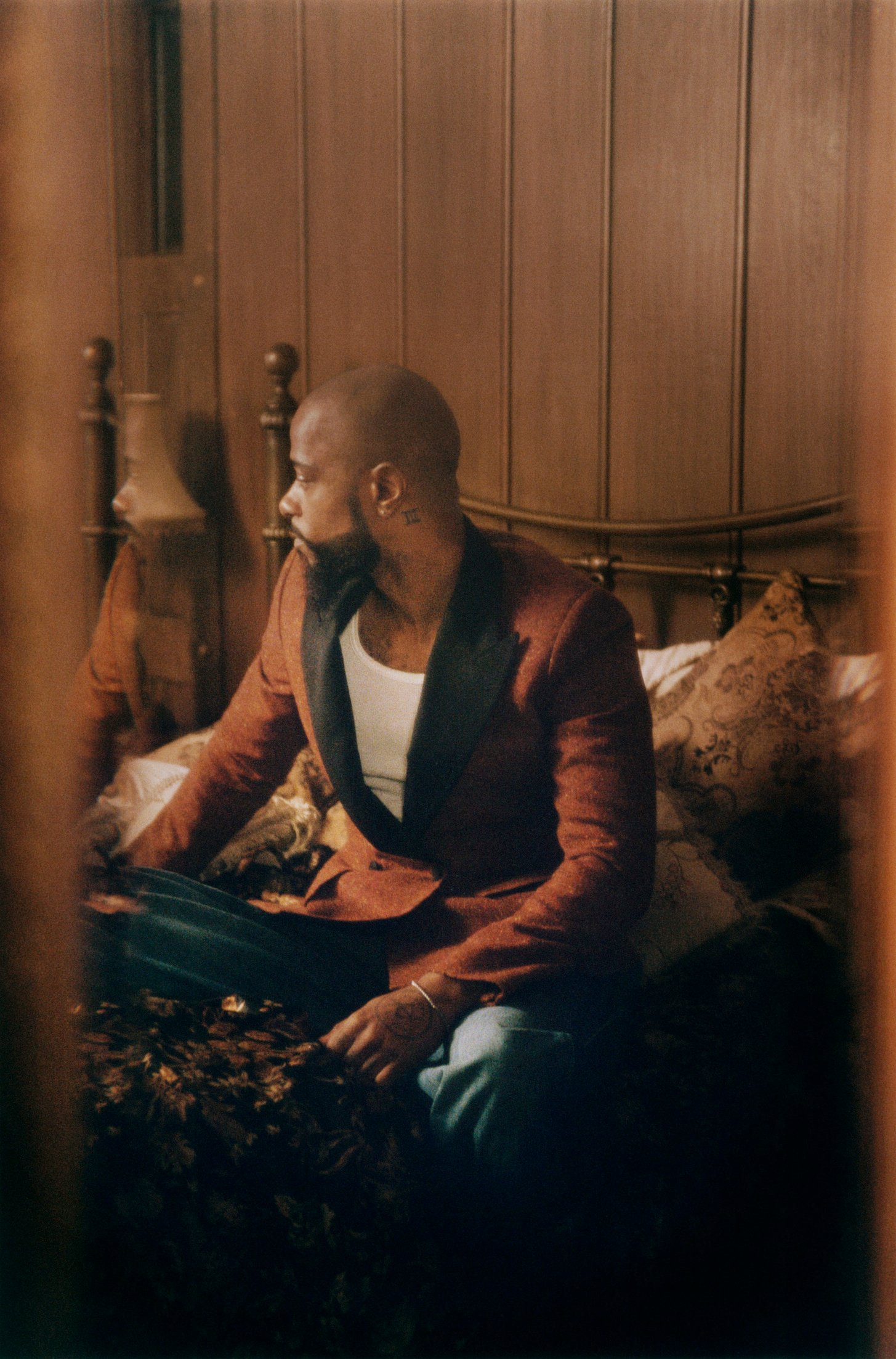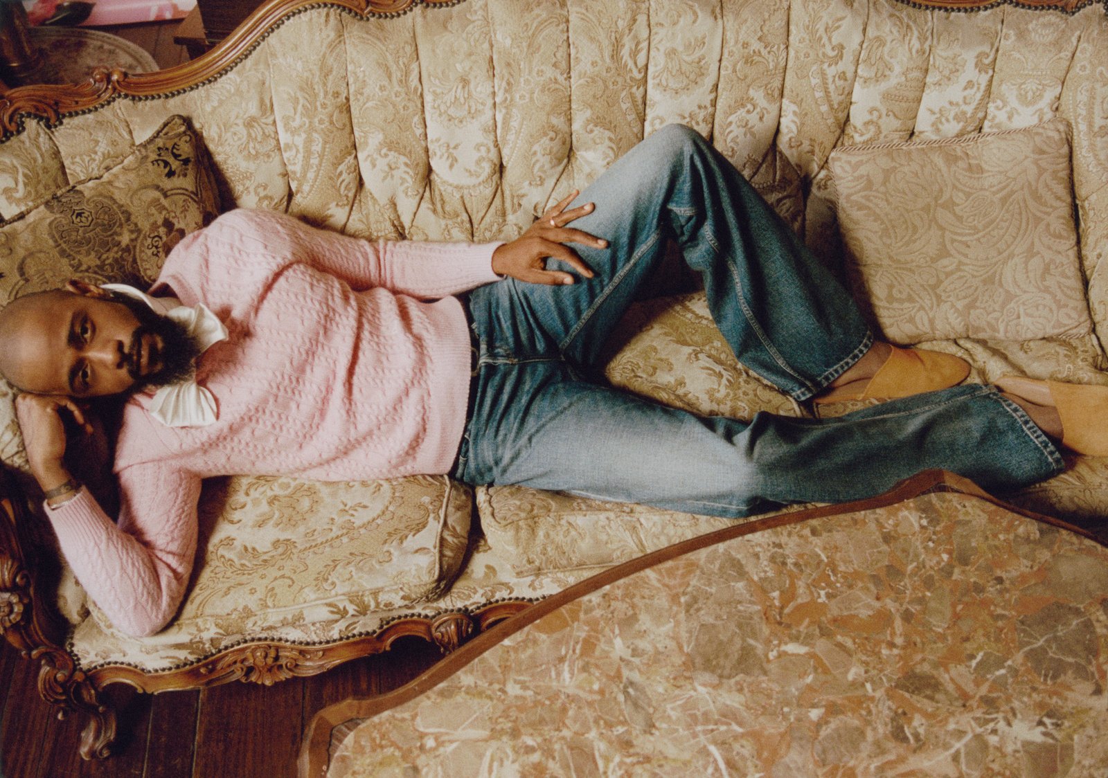 LaKeith wears jacket, shirt, jeans and scarf DIOR.