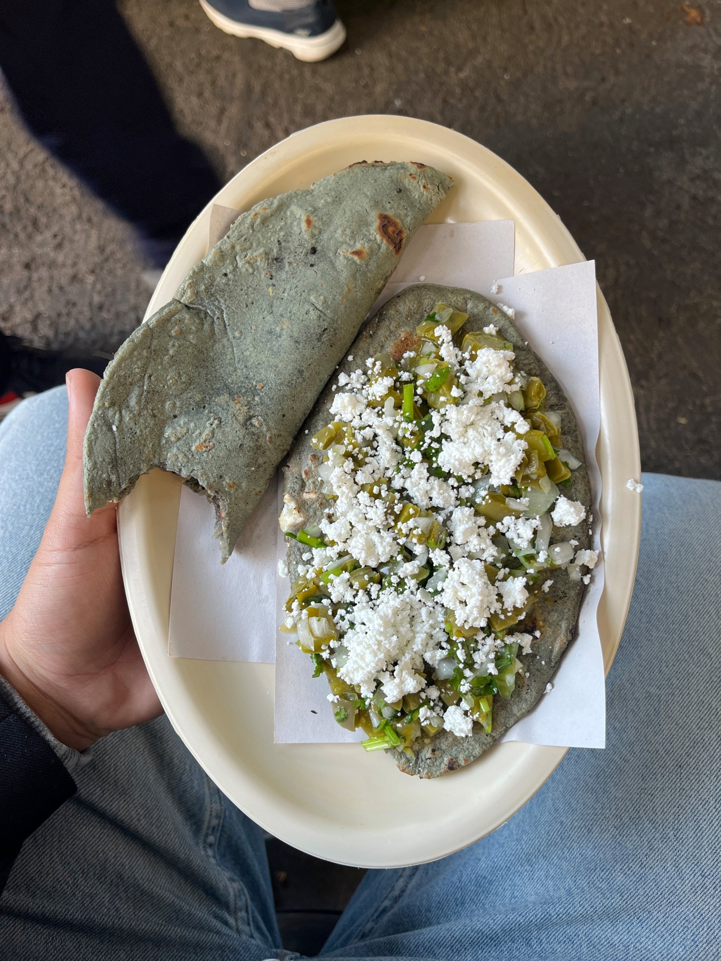 I’m from a neighborhood north of Mexico City called Claveria. My favorite thing about it is my mom’s house, close to a very nice park. My second favorite thing is the food you can get there. Tlacoyo de requesón is the best. A tlacoyo (for those who don’t know) is kind of an oval corn-masa patty stuffed with cheese or beans. You can add nopales, more cheese, and salsa on top. The good thing is you can find a tlacoyo/quesadilla in every neighborhood, but the Claveria one is a winner.