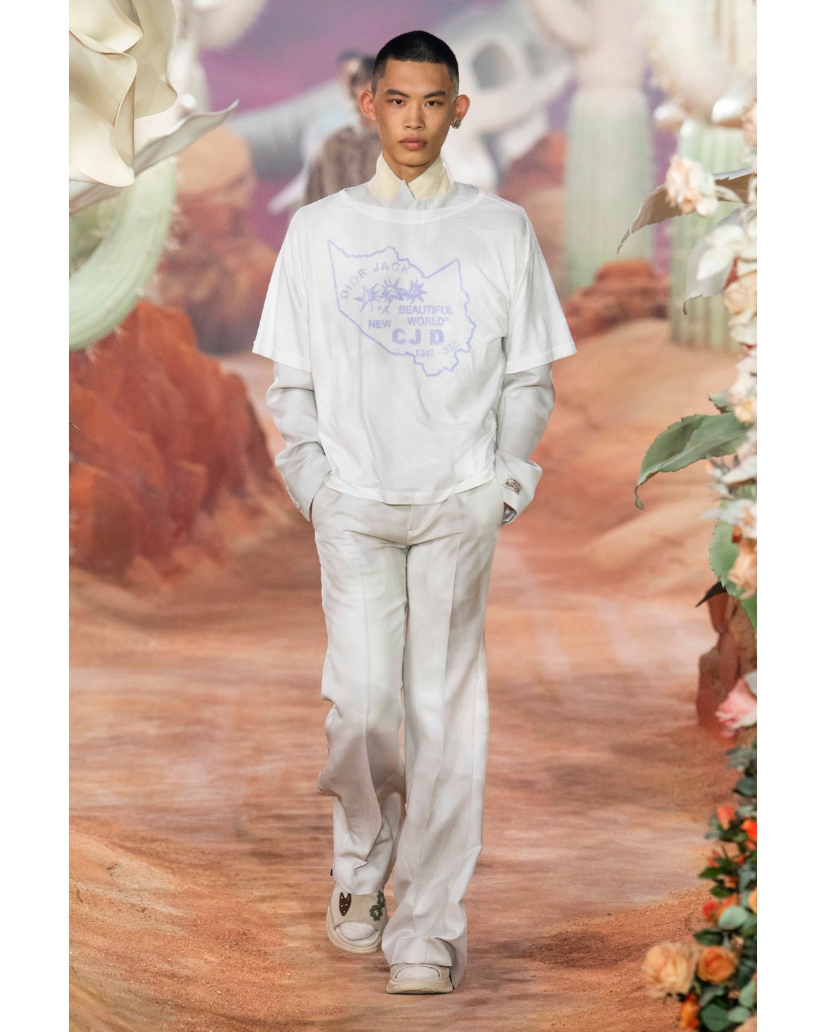 Dior Men’s Spring Summer 2022 collection is a collaboration with rap and style superstar Travis Scott. Under his Cactus Jack moniker, the artist contributed graphics, concepts, and references to the runway.