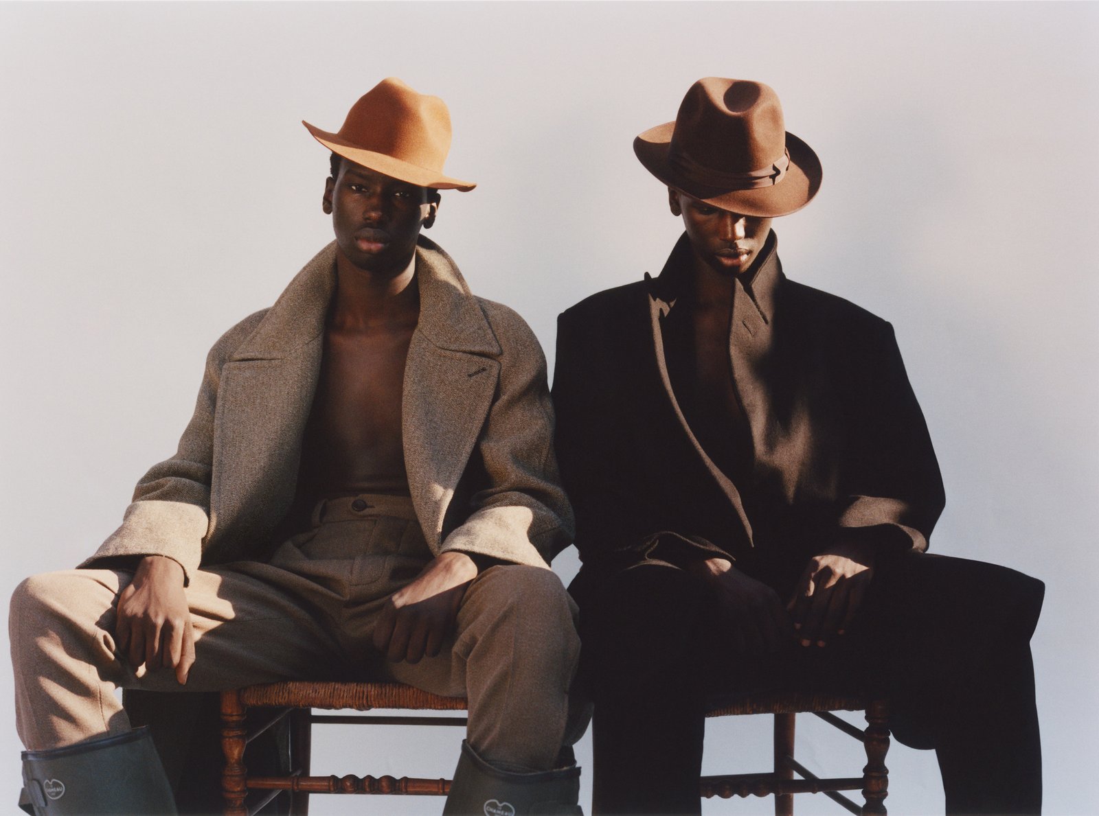 Eyoel (left) wears coat, shirt and pants LORO PIANA. Theodore (center) wears coat, shirt, hat and tie LORO PIANA. Ezekias (right) wears coat, jacket, shirt, pants and tie LORO PIANA.