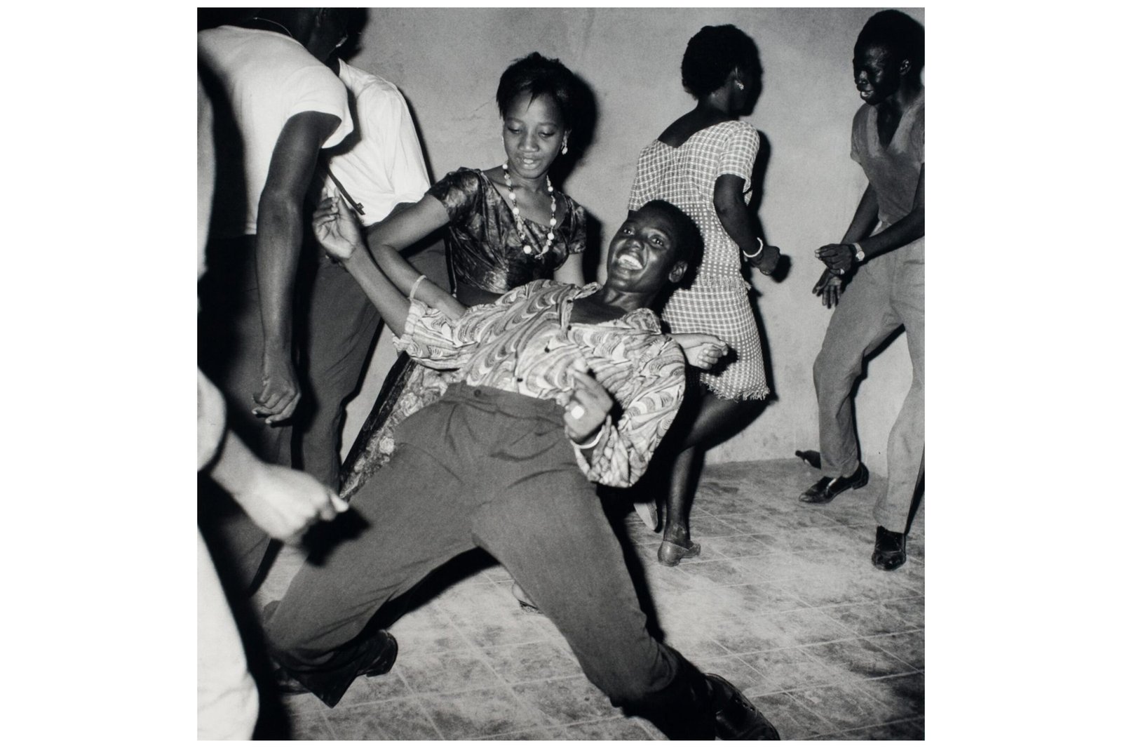In Malick Sidibé’s photograph Regardez-moi! (Look at Me!), from 1962, a young man appears to be having what I can only describe as the time of his life. Surrounded by others—dancing, sweating, feeling intensely whatever rhythm calls out —he leans back at the waist, knees turned inward for support, with his shoulders firm and arms out in front of him. It looks, at first glance, as if there is a bar he is steadying himself to waddle beneath, but there is none, only the clear and certain smile he wears spread on his face. A young woman stands beside him, glancing at his movement, dazzling in her own right, and I can almost hear the sounds of Bamako at night, a capital city alive two years into independence. I can almost hear an affective language as it comes to life in Sidibé’s image, in a moment of revised social expectations and political contours.