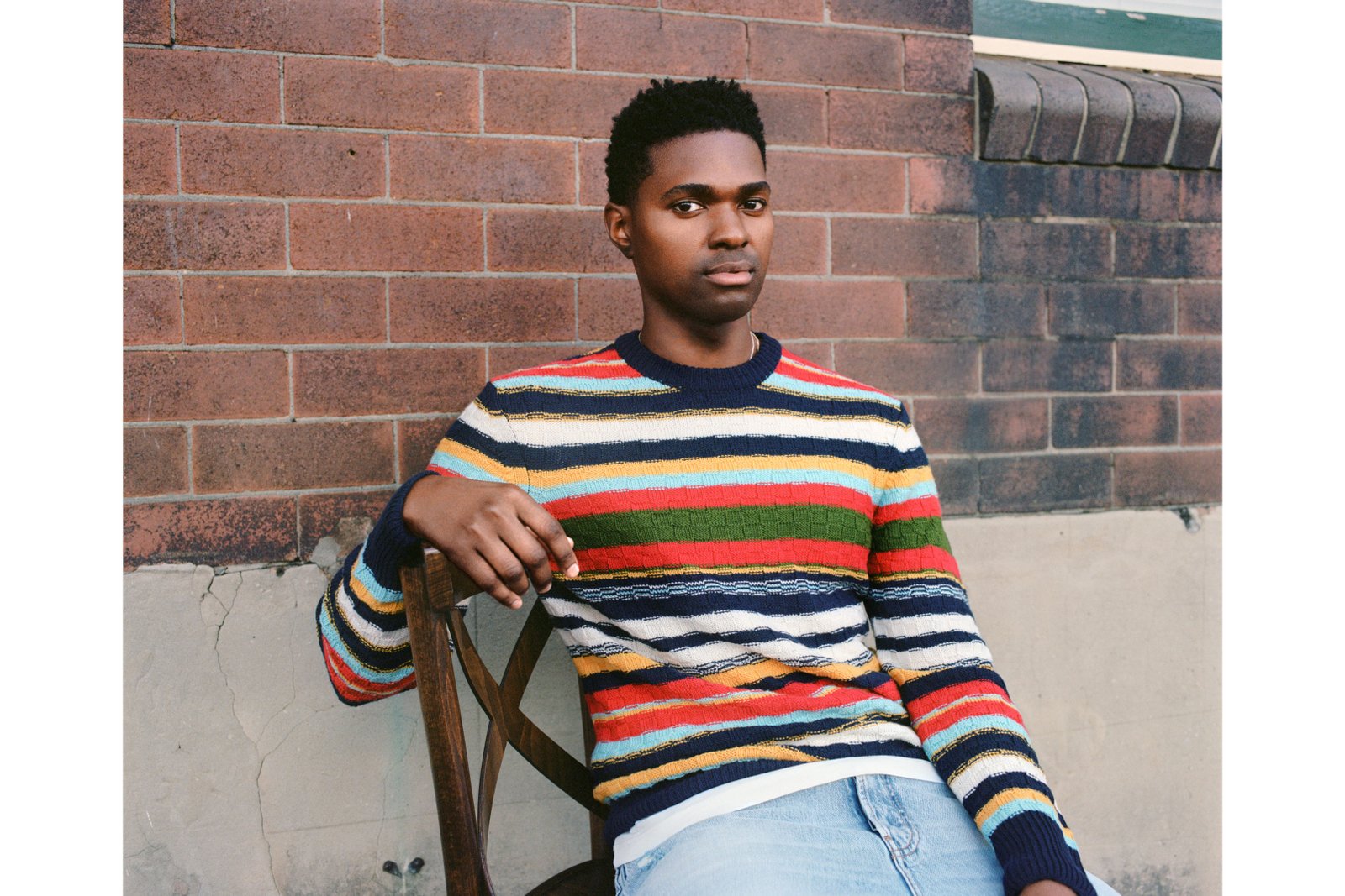 Johnny wears sweater Orlebar Brown, t-shirt Mr P., jeans and sneakers Acne Studios.