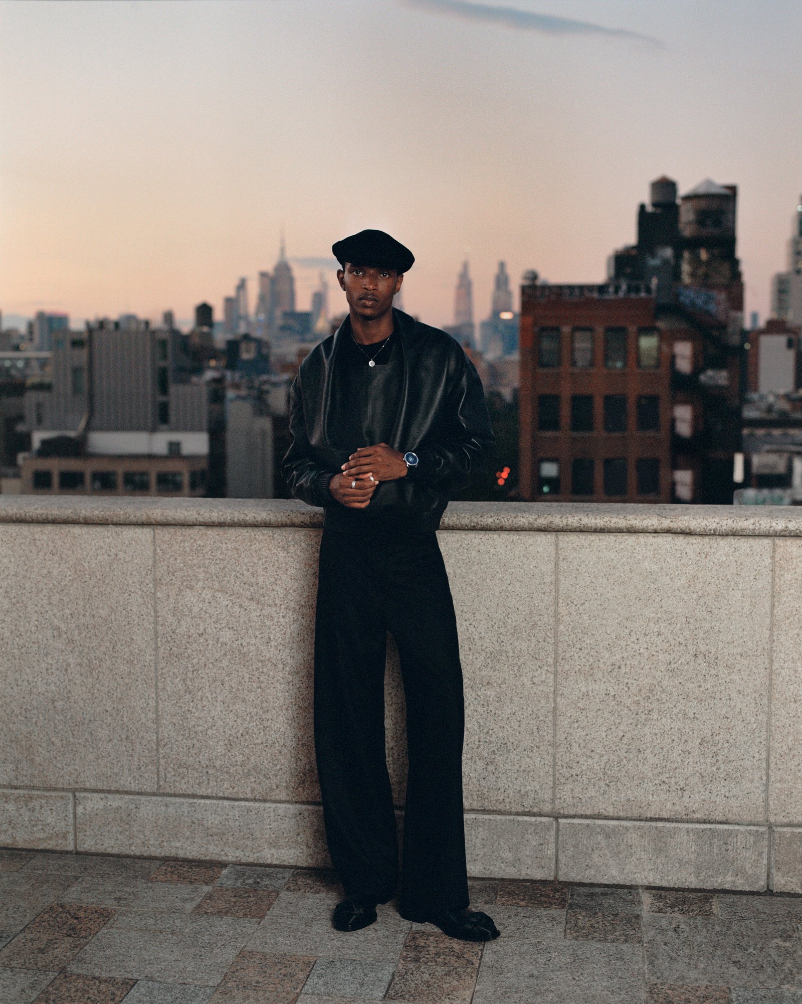 Jacket, sweater, pants and shoes DIOR MEN. Hat DOLCE & GABBANA. Watch HERMÈS. Necklace and rings stylist’s own.