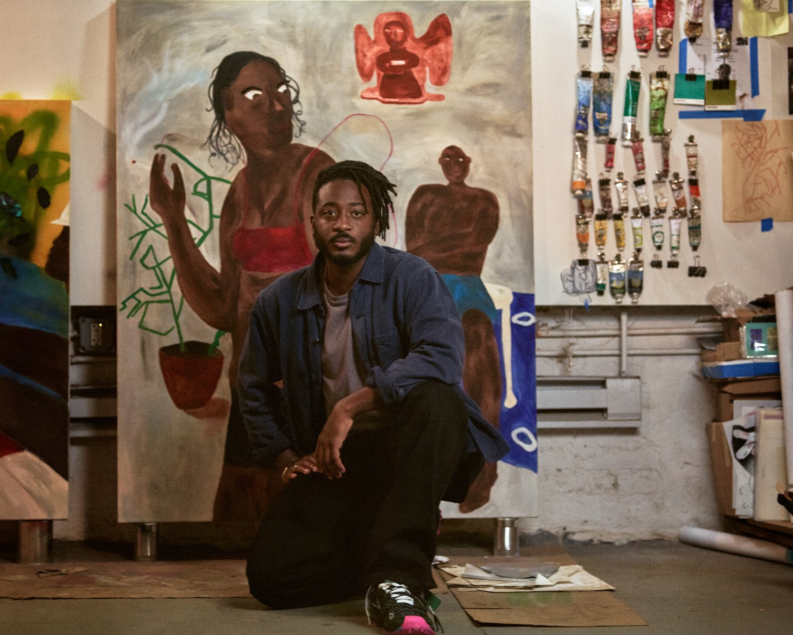 MLS: Well, let’s just get this out of the way: of course, you. I’ve told you this but I saw your show at the Hammer Museum in LA–that was cool. I used to look at a lot of photography, a lot of African photographers and African American photographers like Kwesi Abbensetts, who I still am in touch with. He’s cool. And Jamel Shabazz, I was looking at his work a lot. Micaiah Carter. As far as painting goes, I was looking at a lot of John Rivas, Curtis Santiago, Emma Kohlmann, Lynette Yiadom-Boakye and Chris Ofili’s work.