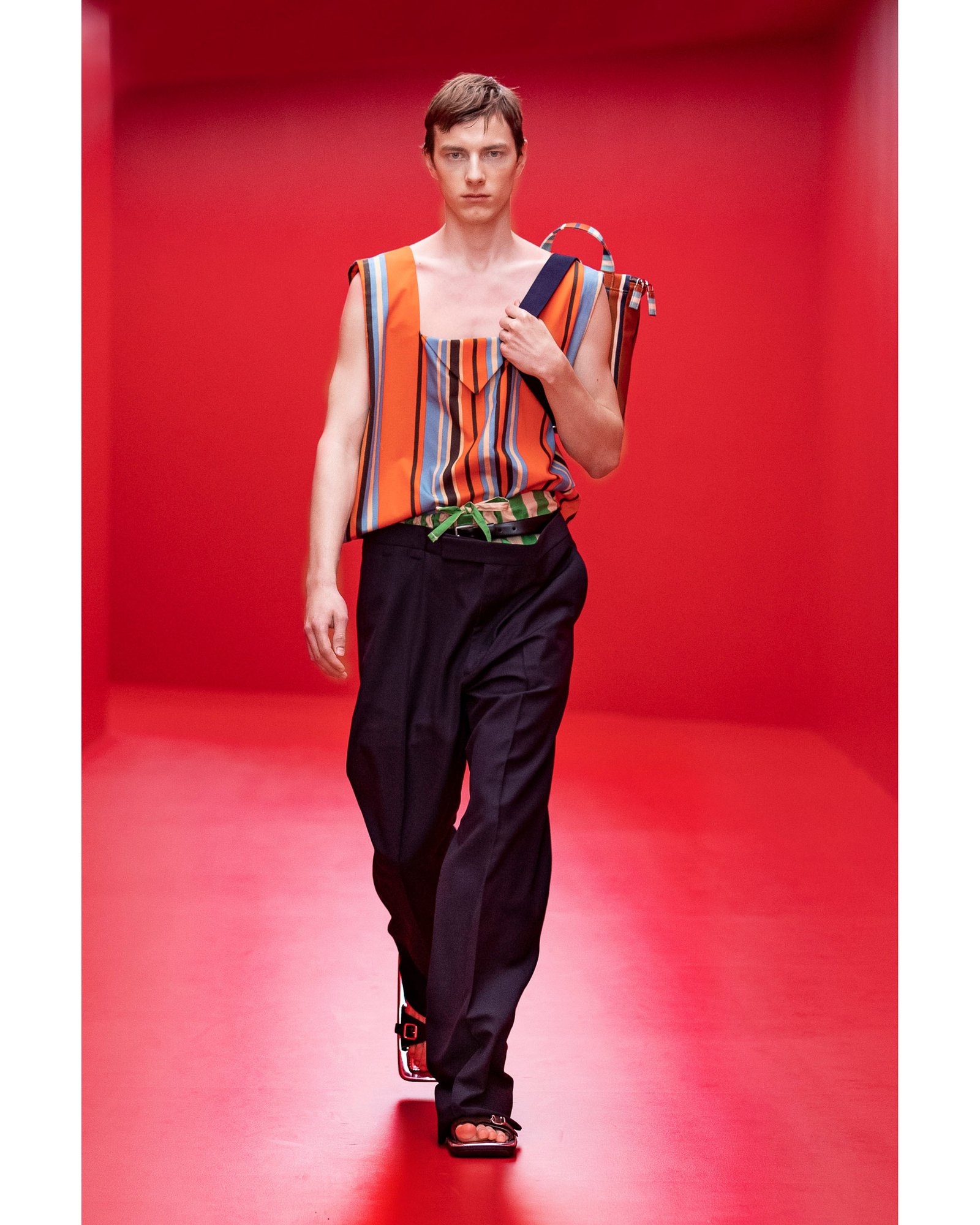 The pair present the new Prada man as one not afraid of showing some leg as we head into a new summer, with a determination to bring all the positivity and freedom of the seaside to the wearer today.