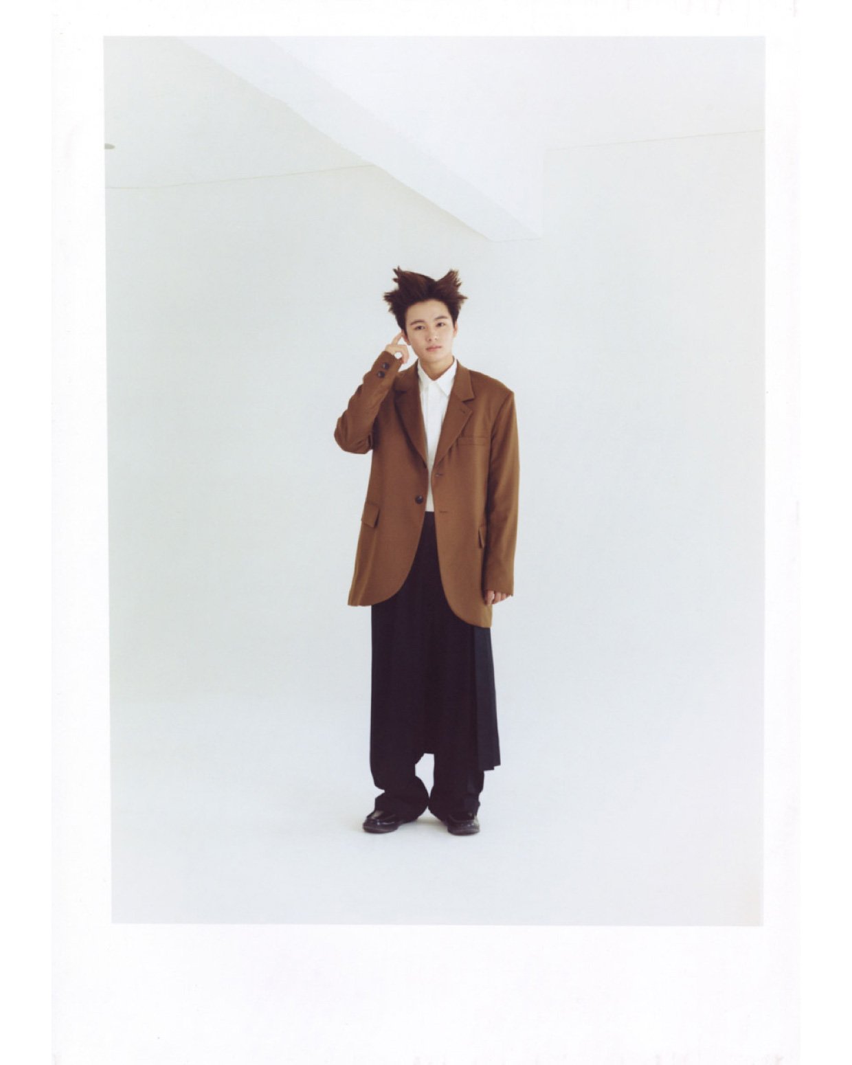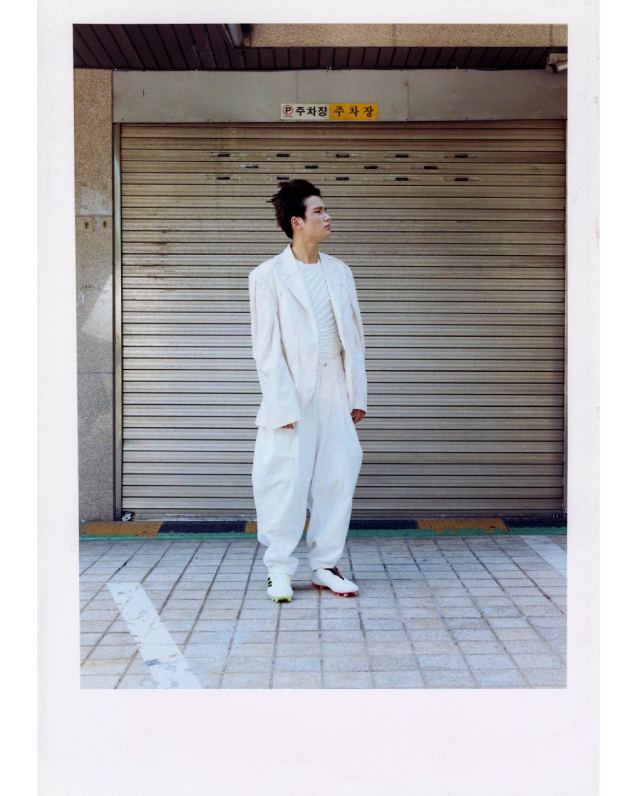 Seong Woo wears coat and pants KEENKEE. Shoes talent’s own.