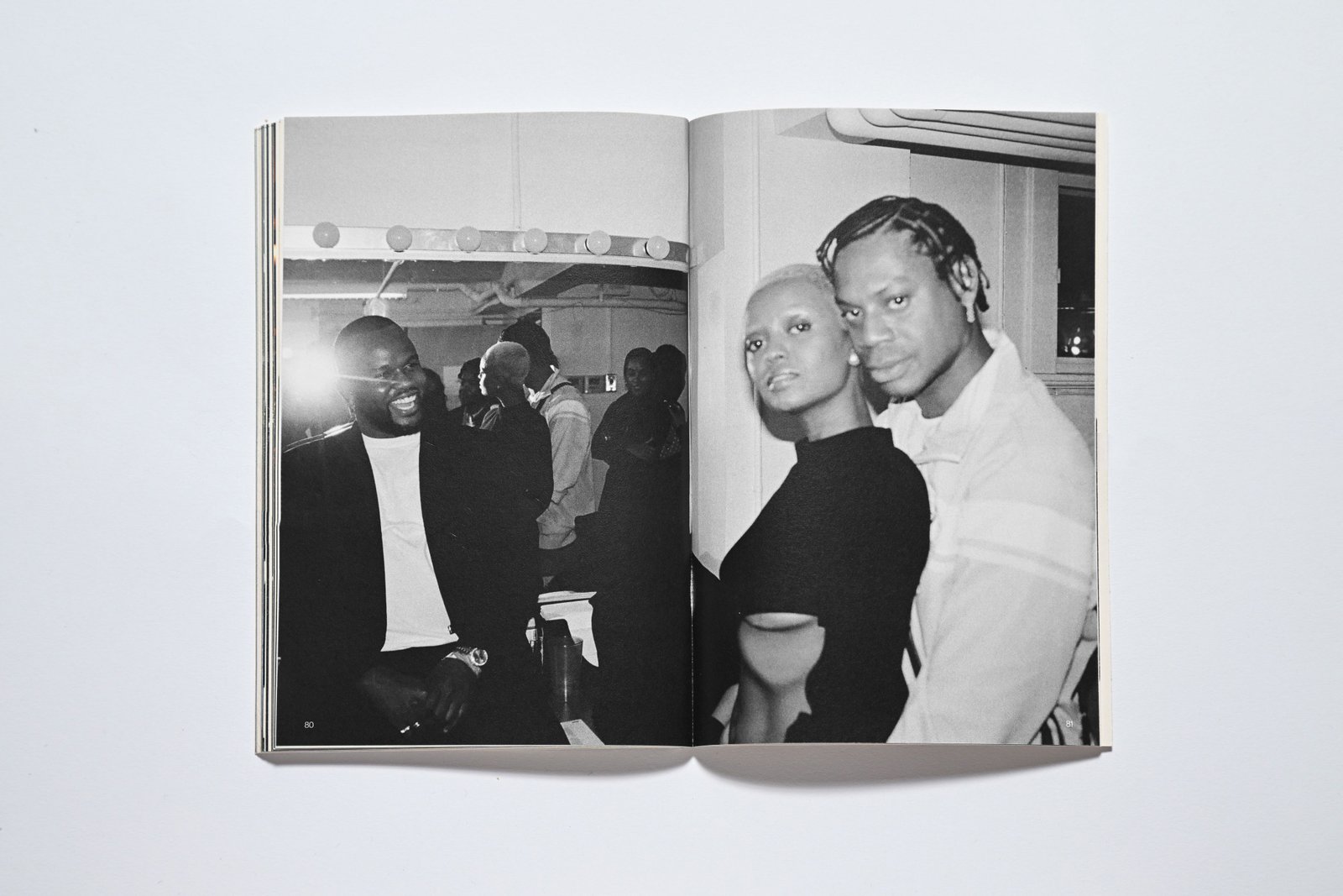 Flipping through the zine reveals an expressive record of the proceedings at Eldorado Ballroom, and the resonances between the individual programs. The dynamic gestures and adventurous use of the theater space in Autumn Knight’s performance piece ‘Nothing #3: BAM’ rhyme with the sculptural physical shapes of dancers, featured in the series’ screening of contemporary dance films. Kelela’s atmospheric use of colored light and fog to accompany her performance, sits in counterpoint and conversation with Maren Hassinger’s magenta-hued light installation. The images throughout capture the collective energy of the events, with audiences, performers and Saint Heron’s extended family of collaborators in joyful communion with one another.