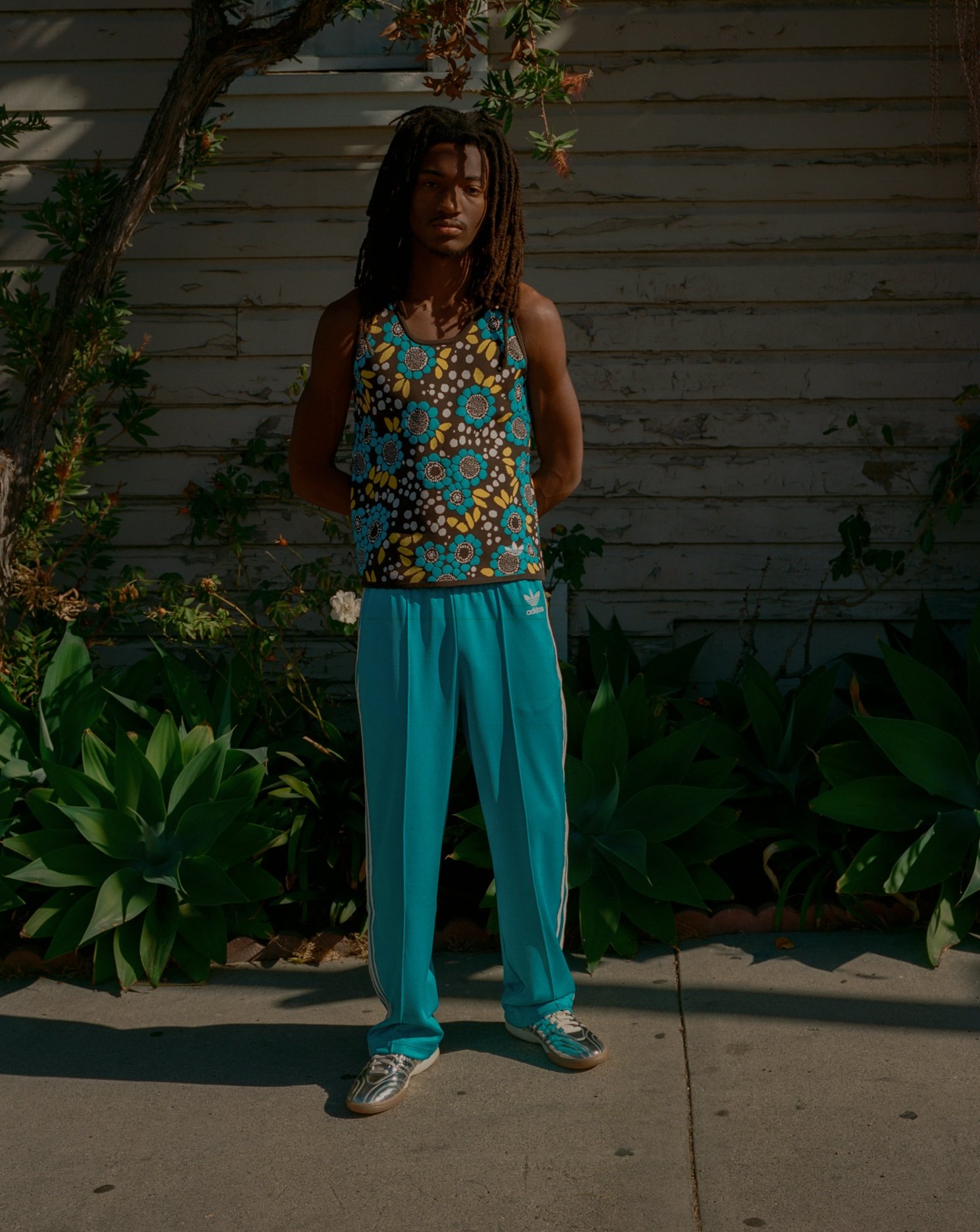 Mustafa wears jacket, pants and shoes FERRAGAMO. T-shirt stylist's own.