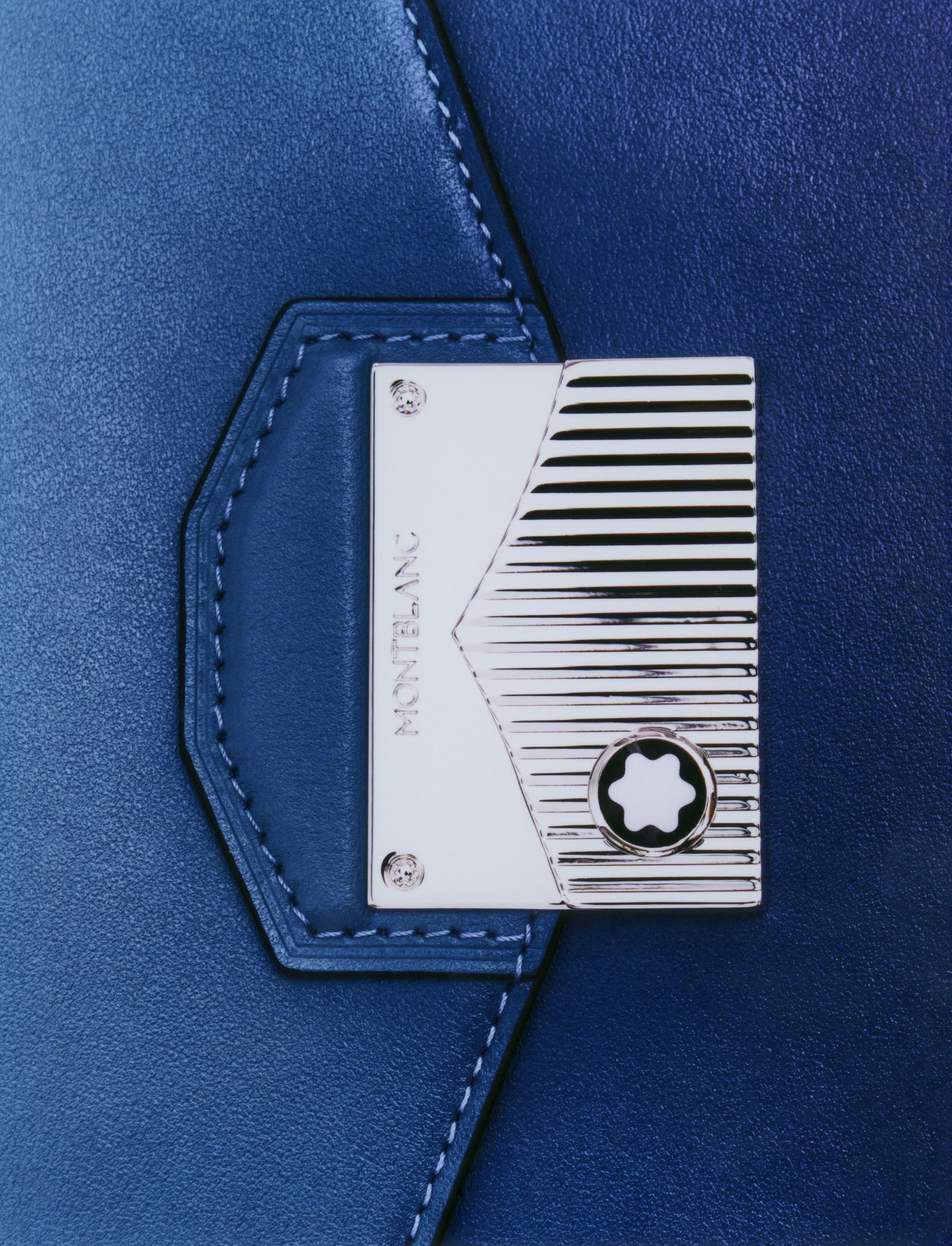 Reach new heights with this Meisterstück mini messenger bag, in dusky sfumato blue. The color packs a punch, but the real star of the show is the Mont Blanc-inspired closure—quite literally, the silhouette of the tallest of the Alps, from which the label derives its name.