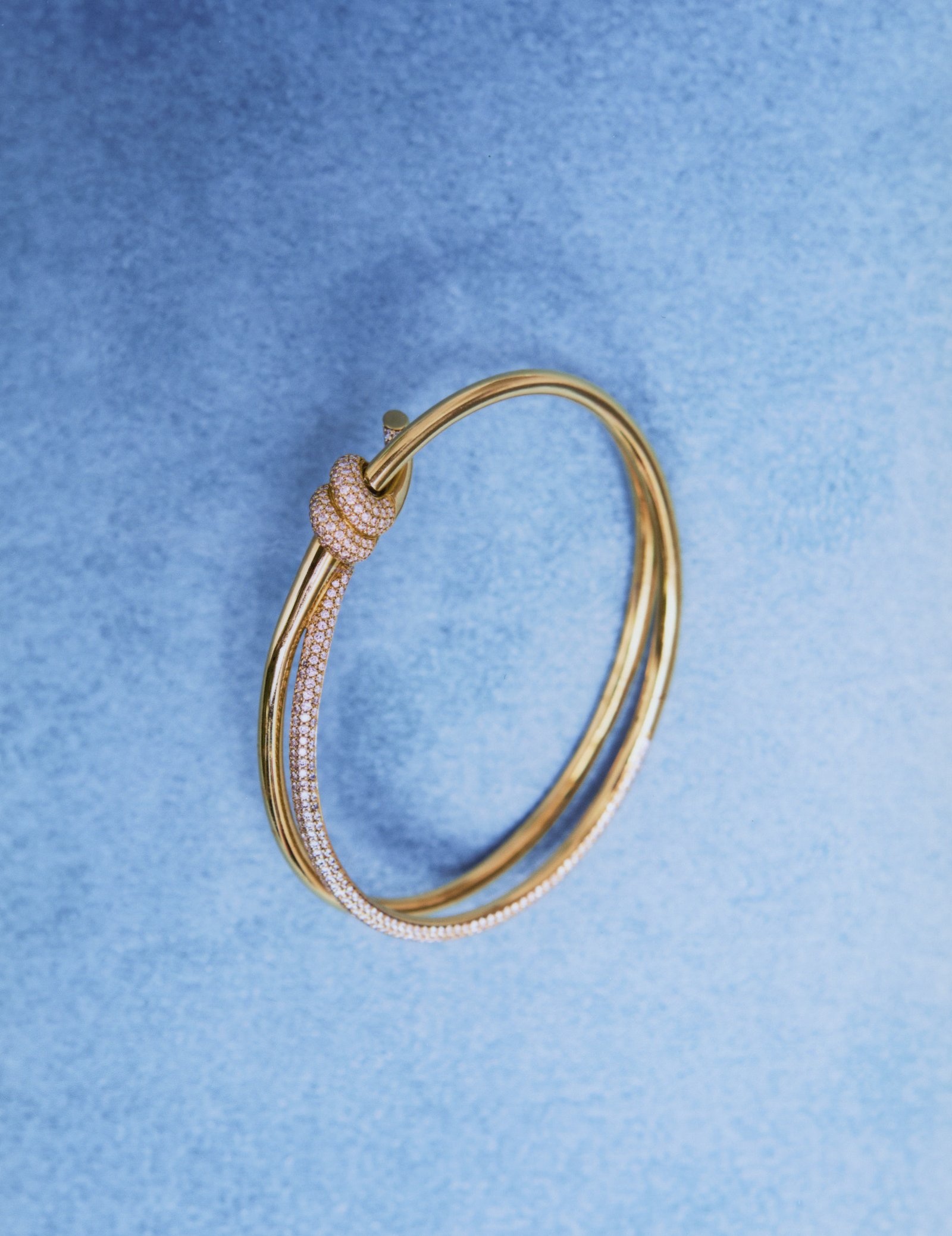 The Tiffany T is a classic for a reason. It’s the house’s best-known motif—a declaration of love and possibility. The hard part is choosing between solid 18 karat gold and that band of round diamonds. You might opt to get them both, to stack or to share.