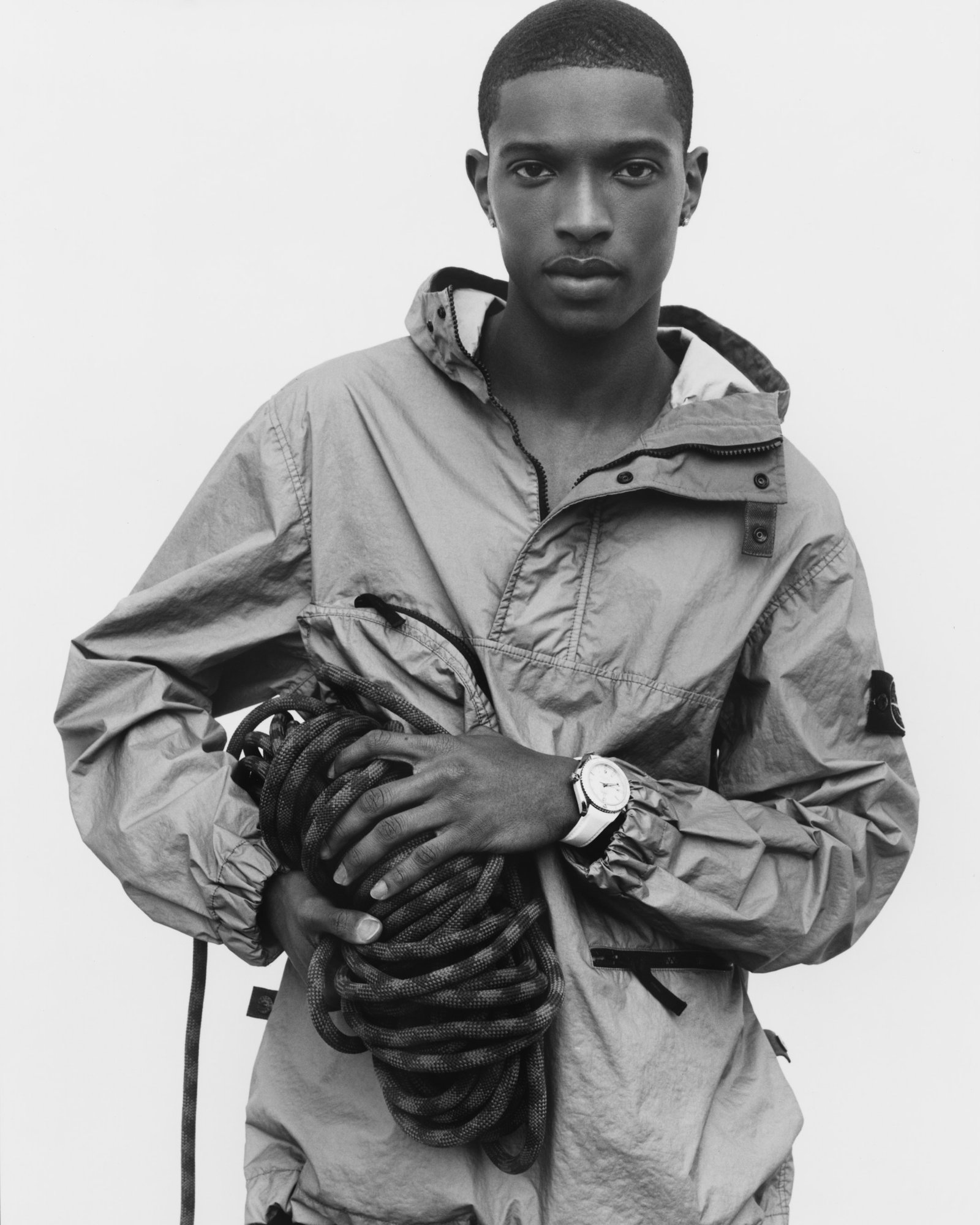 Jacket and pants STONE ISLAND. Watch OMEGA.