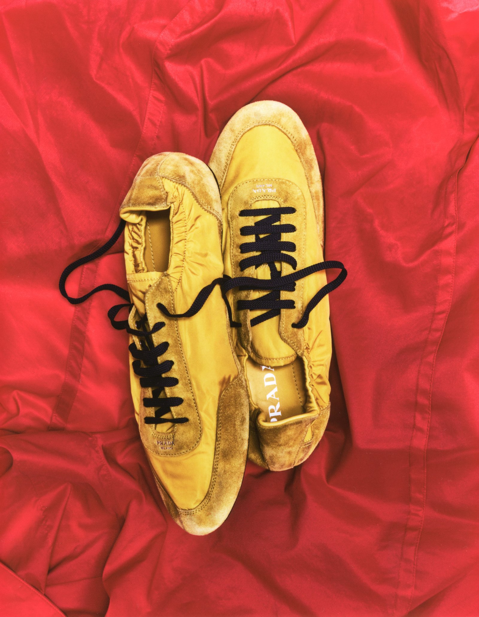 Sporty and artistic, stylish and practical, the new collapsible, slip-on Prada sneaker is halfway to being a ballet flat—and poised to become the next shoe of the moment.