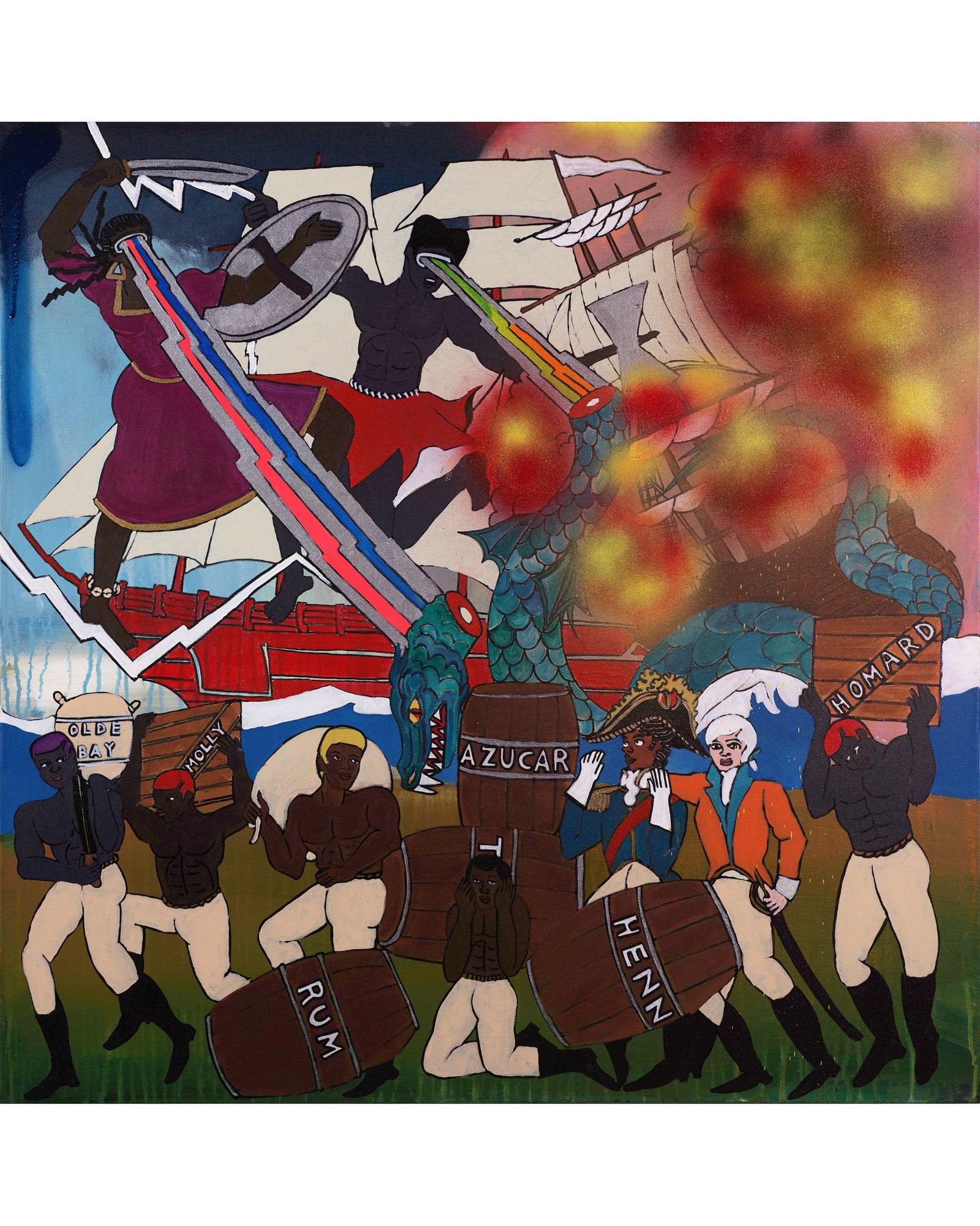 Umar Rashid ‘We will allow you to keep the lesser half of the shit you think you own. Shango and Oya destroy an empty, outgoing slave ship while allowing a crimson corvette to deposit the trade goods for the fete at Belhaven Manor. Don’t fuck with the cosmic gods’, 2021.