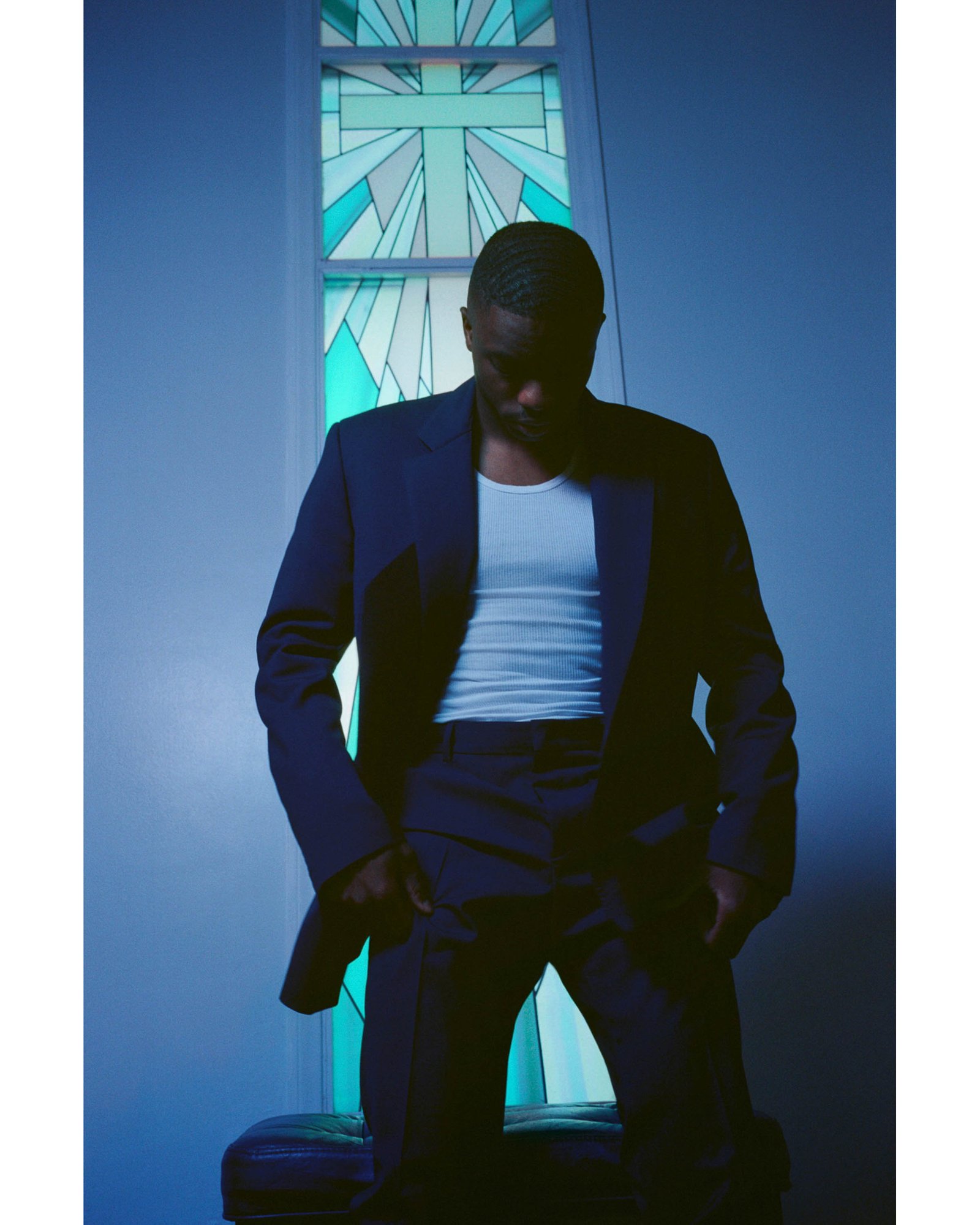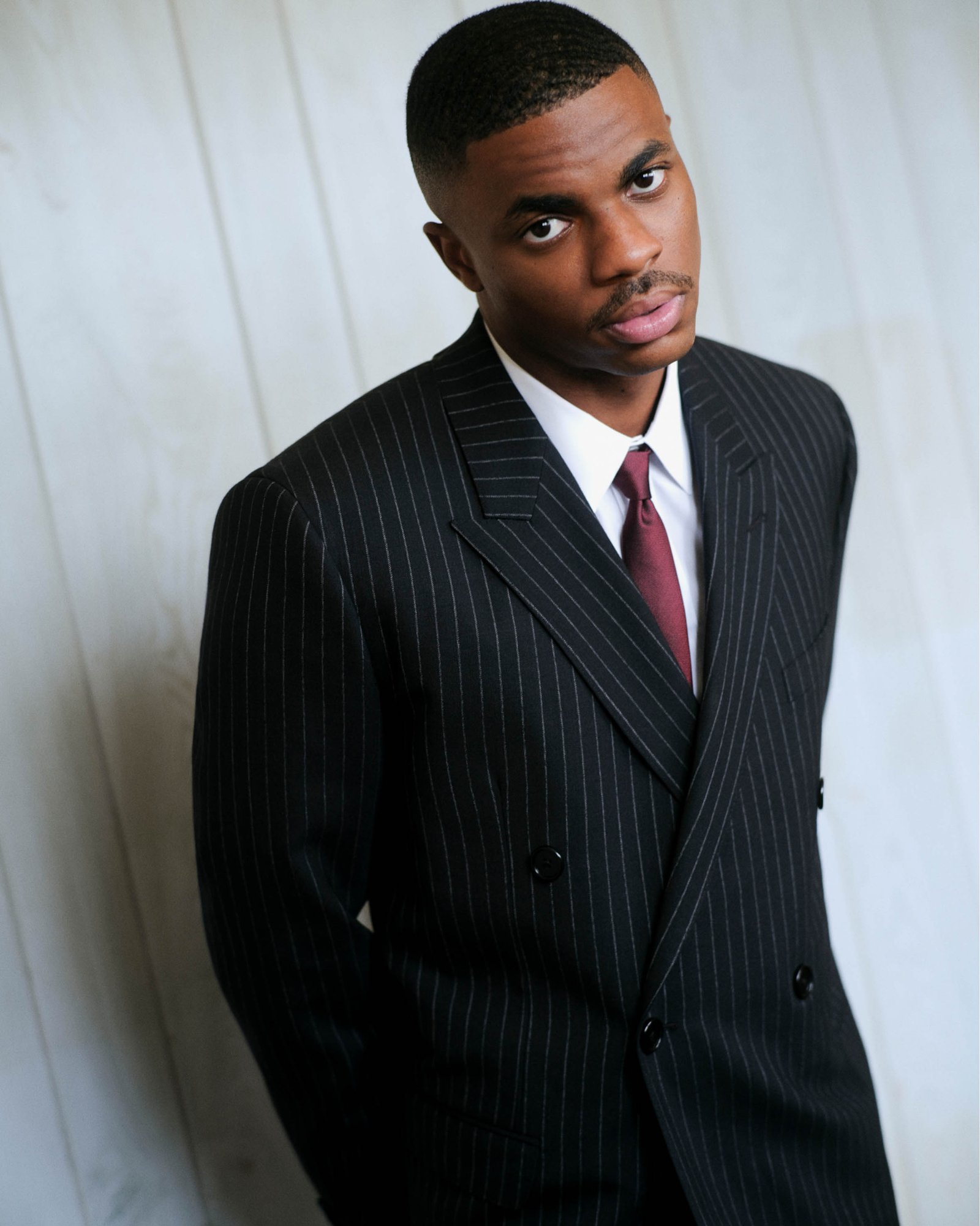 Vince wears jacket, pants, shirt, tie and shoes Celine.