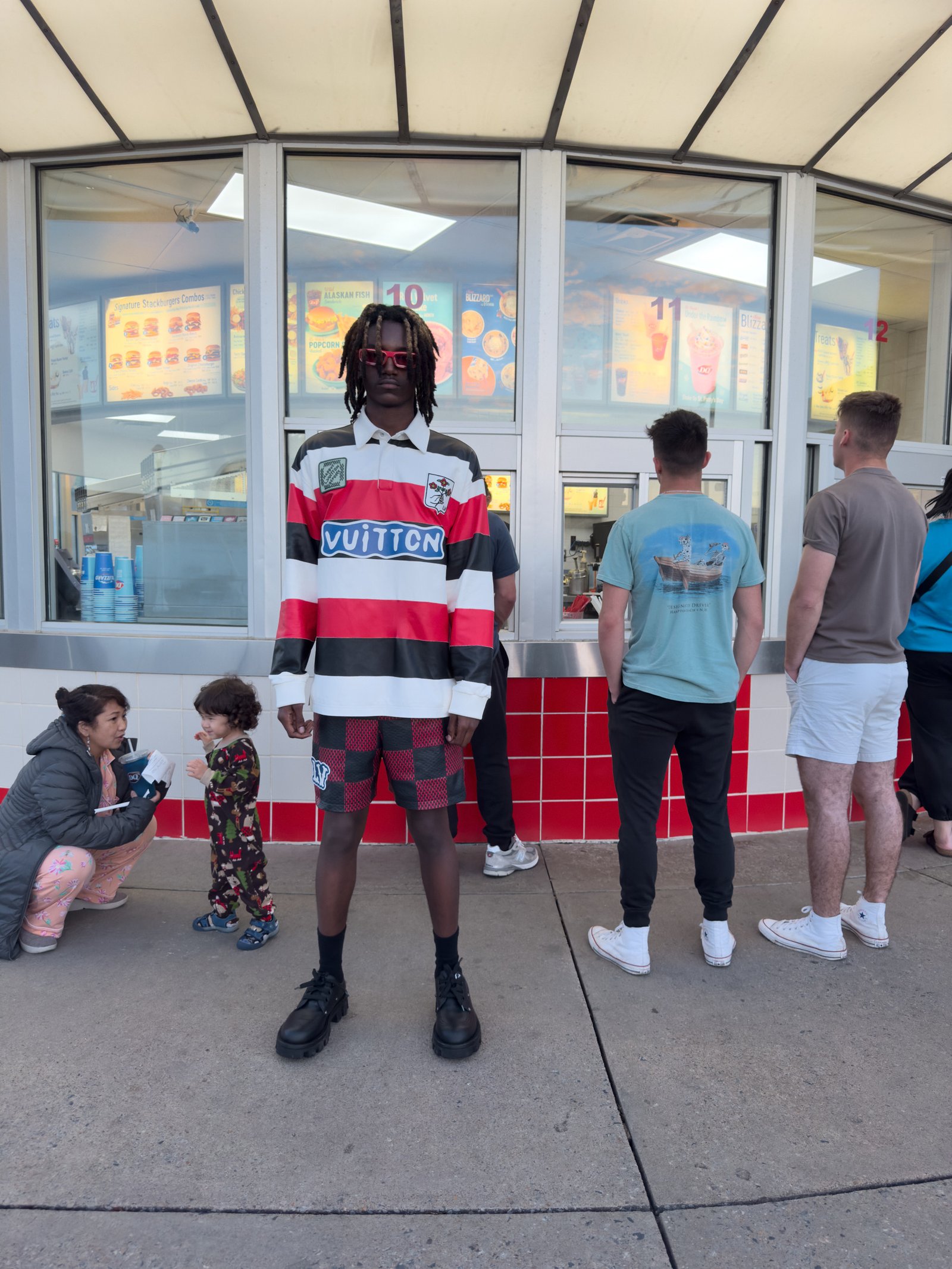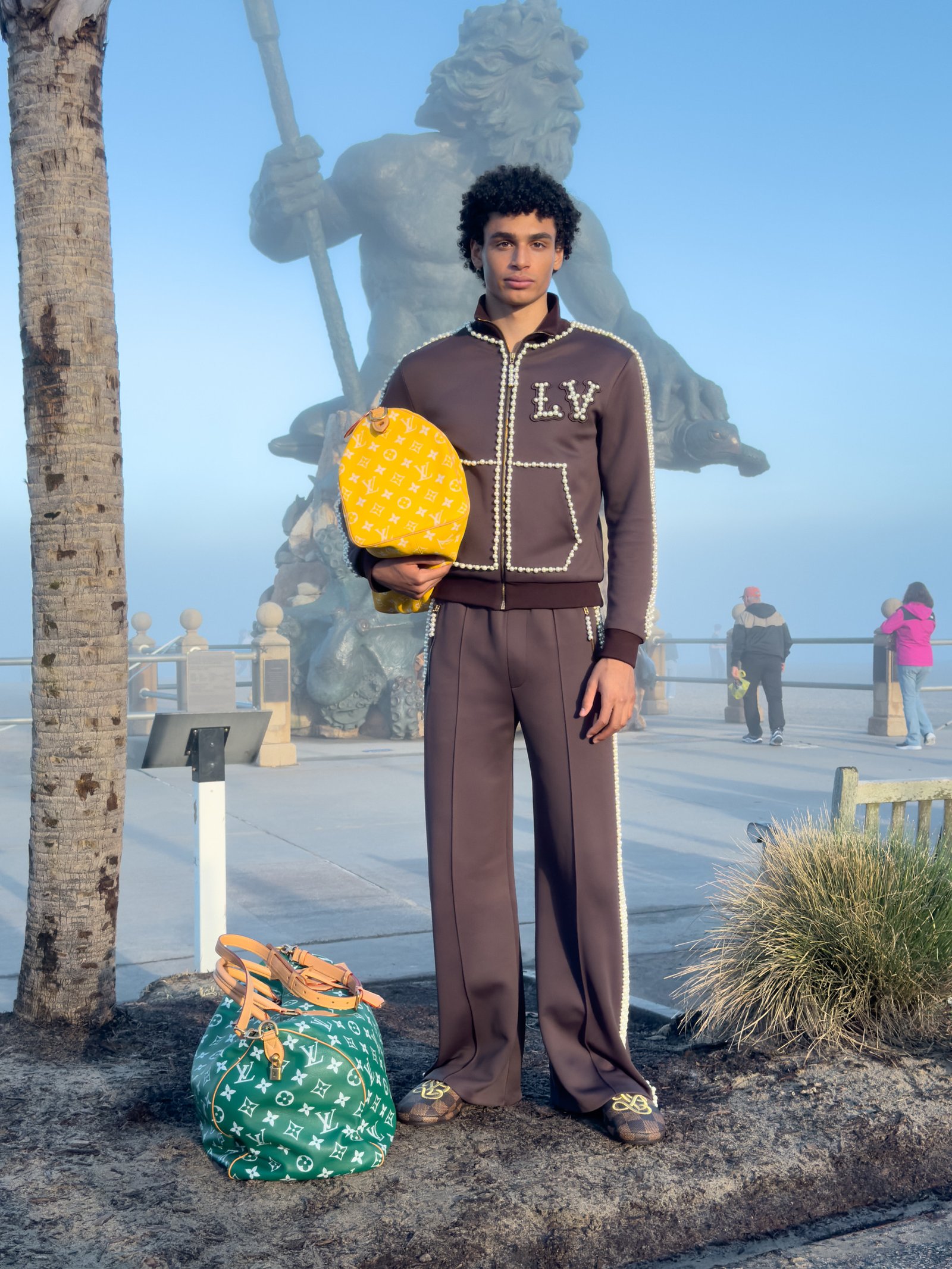 Ayden Roberts, Richmond, VA. Ayden wears track top, pants, slippers and bags LOUIS VUITTON MEN’S.