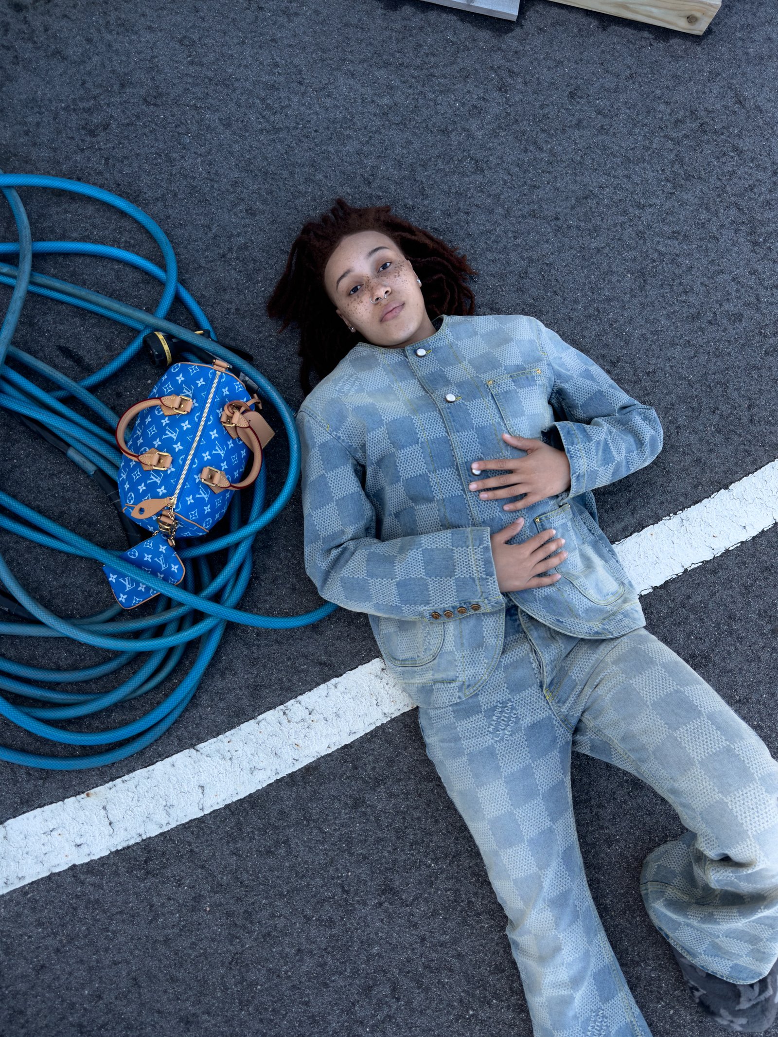 Kayla Hollingsworth, Hampton, VA. Kayla wears jacket, pants, boots and bag LOUIS VUITTON MEN’S.