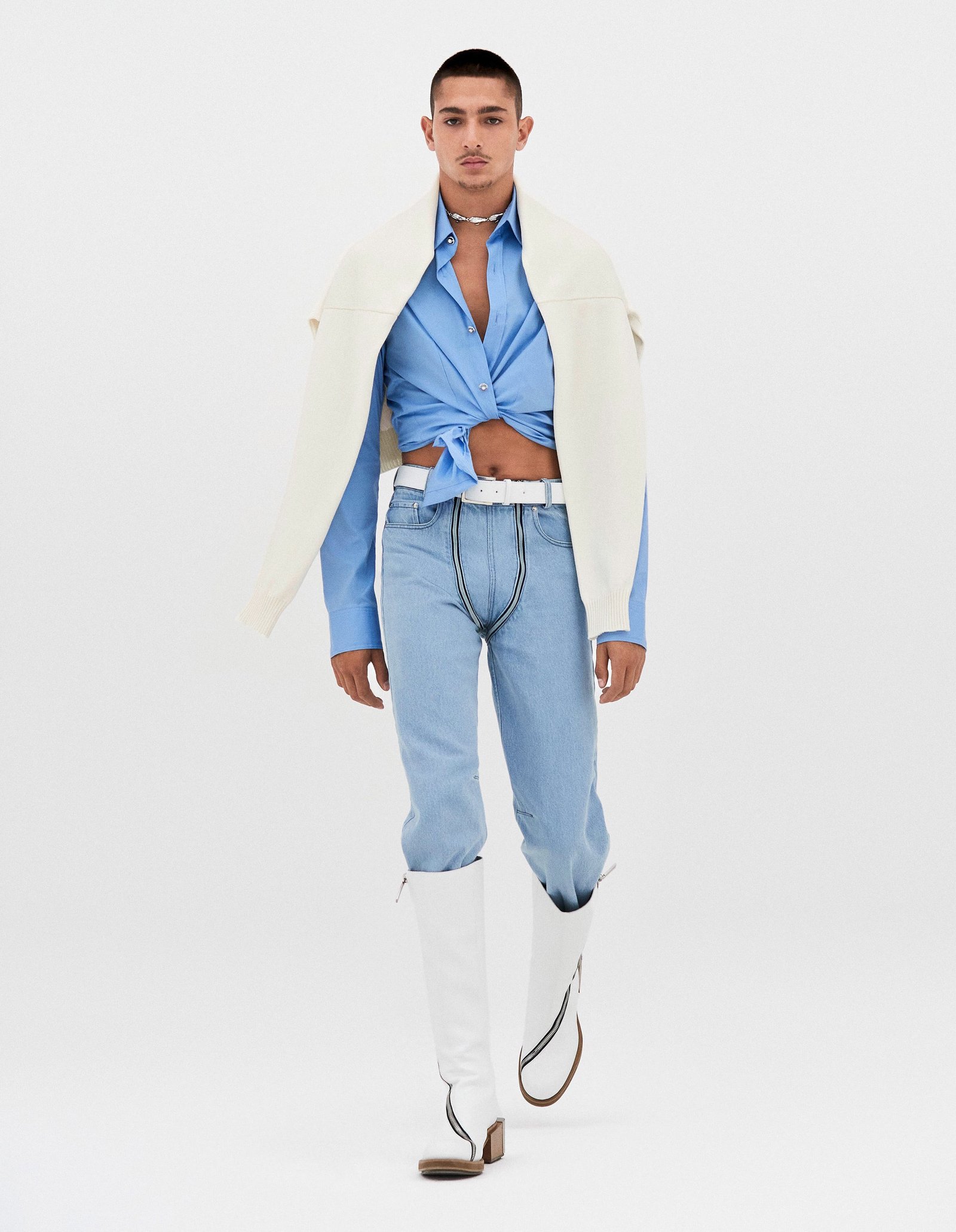 Blessed wears sweater and jeans GUCCI. Jewelry Blessed’s own.
