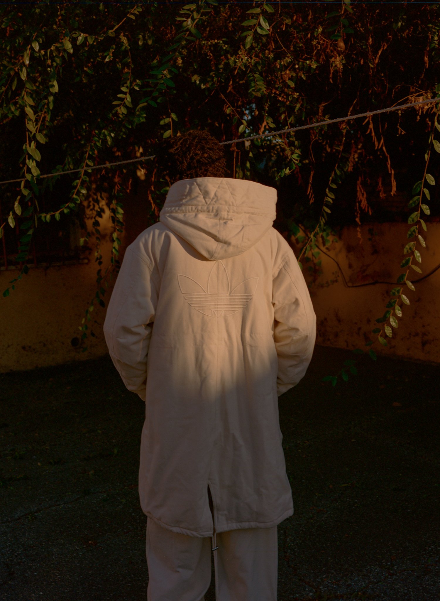 Evan wears t-shirt and jacket ADIDAS ORIGINALS BY WALES BONNER.