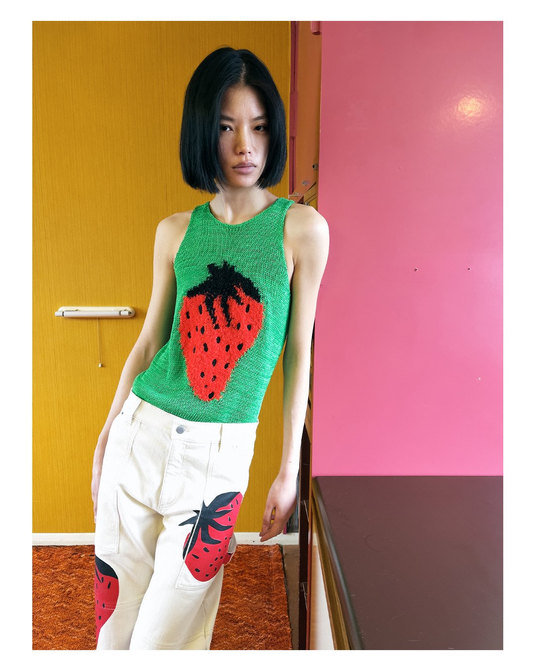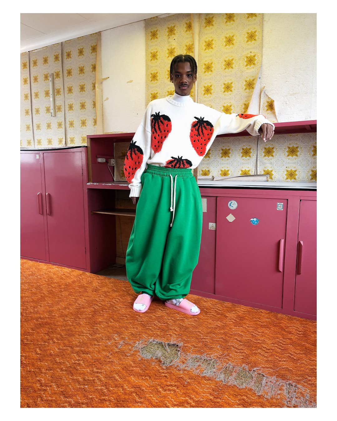 For the Spring Summer 2022 season, JW Anderson brings his namesake label to playground. Fresh fruit prints and tromp d’ceil knits take centre stage for summer.