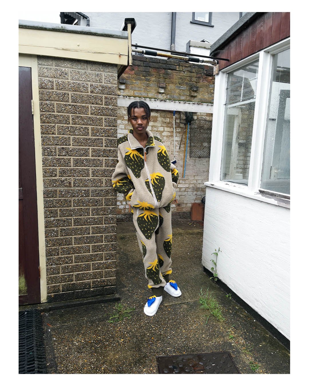 There’s an element of playful dress-up in Anderson’s world – the kind that happens behind the closed doors of a bedroom, lost in the galaxy of imagination and spontaneity. His version of lockdown is a primary school utopia where you actually want to stay home and play pretend. Oversized fleece tracksuit sets make the premise all the more appealing.