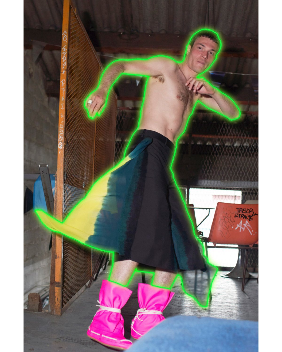 Creative Director Jonathan Anderson is feeling hopeful. The hazy fever dream of pulsing fluro and shredded metallics are the uniform set to usher in what Anderson refers to as our current “age of optimism.” As we return to the dancefloor and pack bars full of lust for life and company, Anderson borrows cues from the early days of nightlife culture as we know it. Oblique lenses shield eager eyes to maintain mystique. Smocks adorned with translucent fringe celebrate movement and body—glitter gleams, refracting light like a twinkle returning to one’s eye. Loewe’s now-classic elephant tote even gets the disco treatment. Pupils are dilating, drinks are spilled, and sweat glistens in the Loewe universe that not only resists the parameters of the gender binary but completely reimagines dressing for the new world.