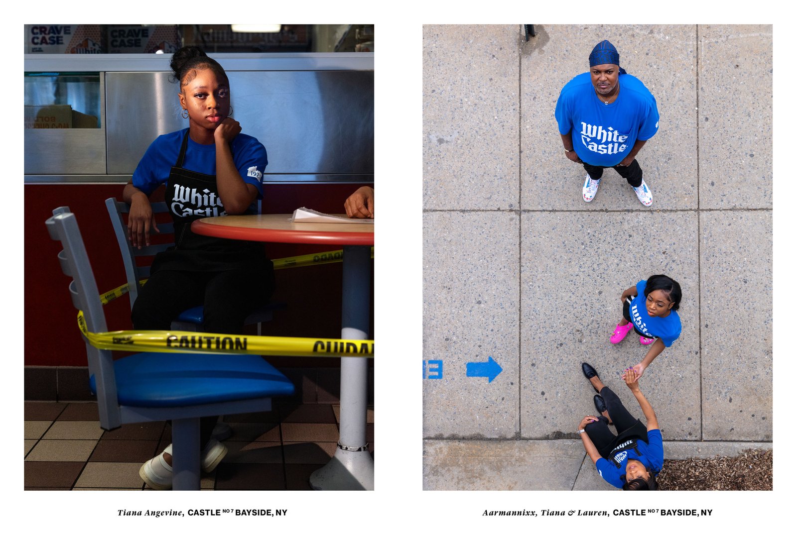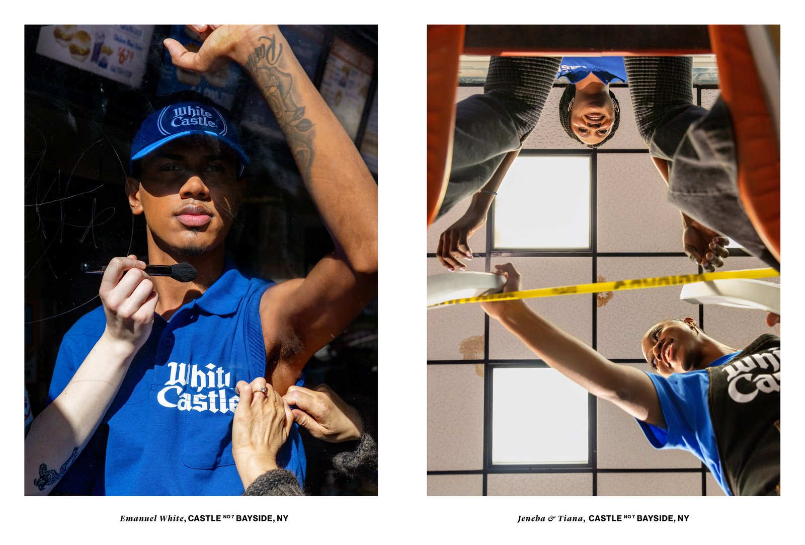 The new uniform marks the first time White Castle has offered a durag as part of the chain's uniform, and to our knowledge, the first of any American restaurant's uniform. Artist Elliott Jerome Brown Jr. photographed White Castle team members in the new uniform across New York City from the Bronx to Queens, where Telfar Clemens himself was born.