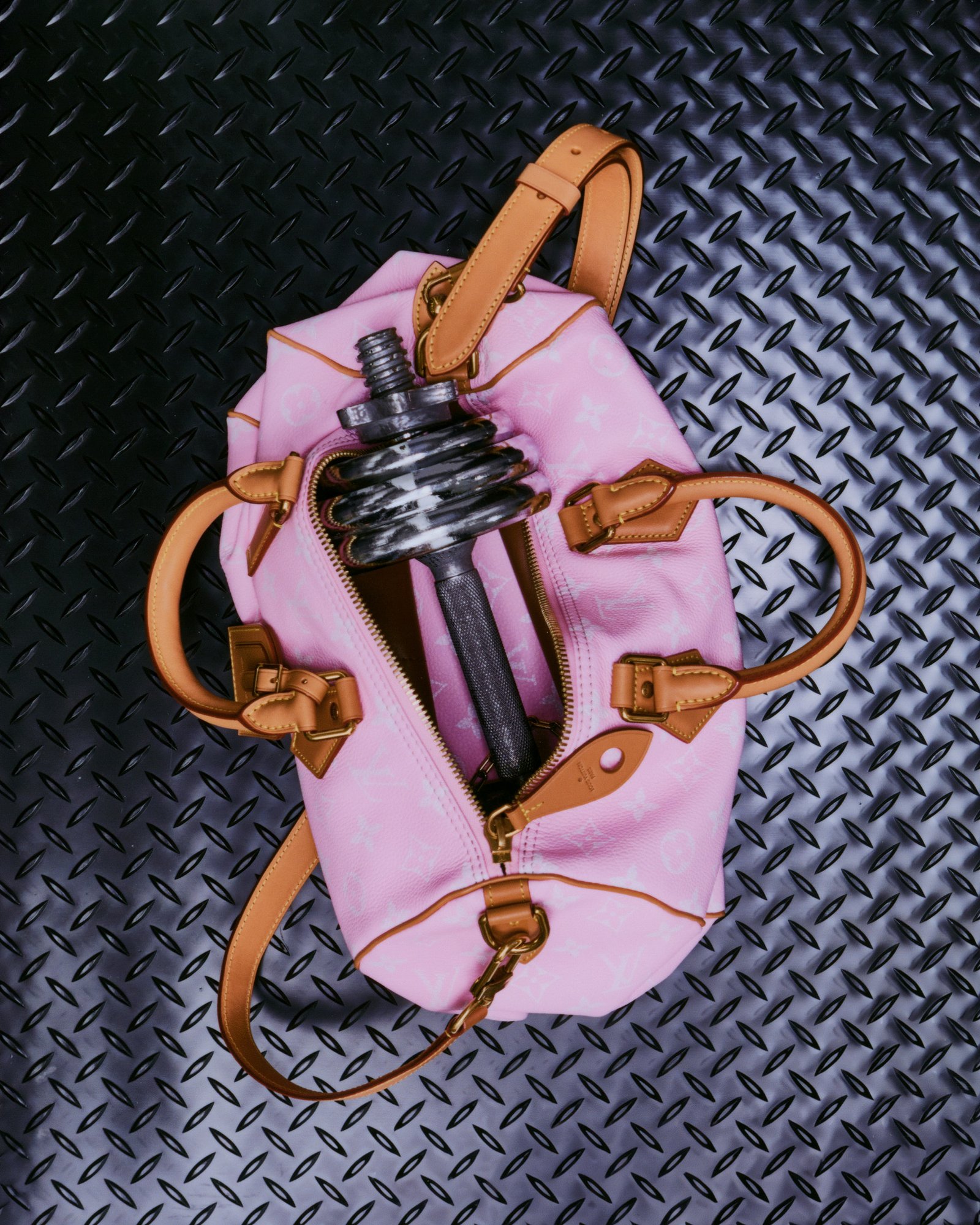 Malik wears sweater, pants, bag and sneakers (in bag) PRADA.