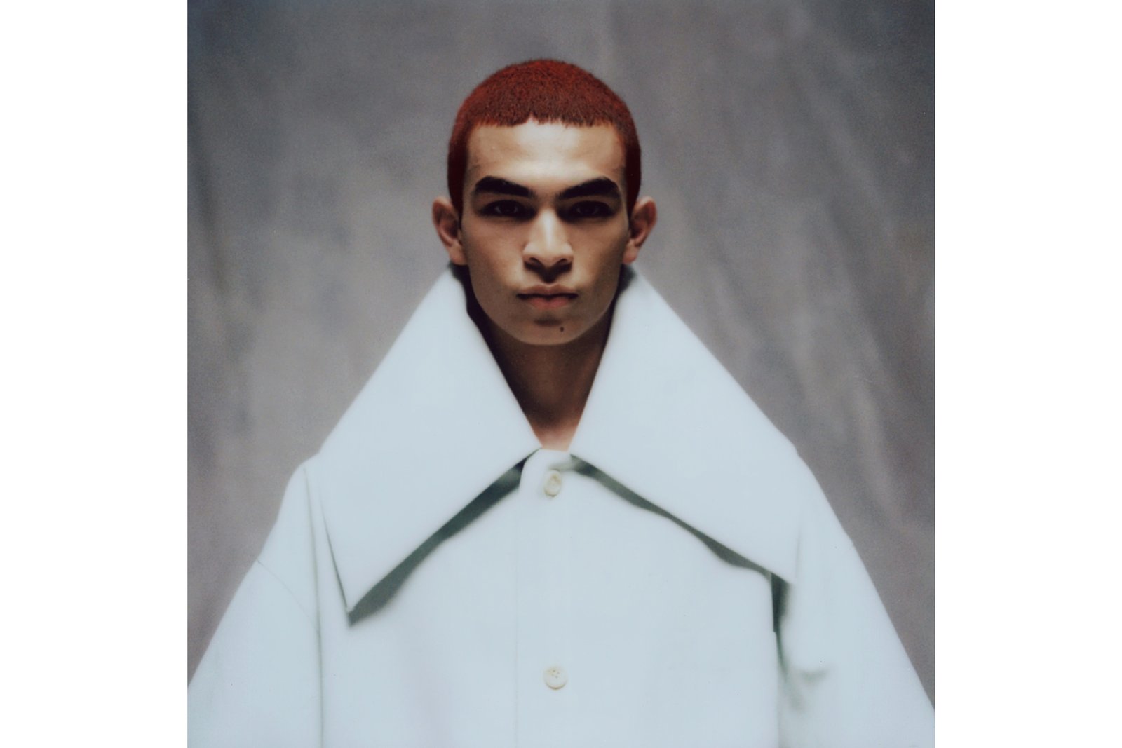 One Mamiya medium format and one Polaroid Instant camera lens the Willy Chavarria picture show. While both objects work to frame the ethereal against candid moments – a Felipe Merida portrait behind Chavarria’s workspace helps explain the methods behind all this fashion madness. Merida is a Guatemalan artist who dives deeply into moments of cultural community. While Merida regularly paints pictures of pop cultural iconography, this particular image is from a series on Hasidic Jewish people in Brooklyn, all done with a ballpoint pen. The Orthodox aspect is apparent; as is the obvious orthodoxy these two share. Like Merida, Chavarria deftly bounces between pop, Latinx and queer arenas, to tie an outward-facing story into fashion contexts. Chavarria’s own collections then balance multiple levels. Whether an entendre or business strategy, his fashion sandwich cookie remains gold on one side with chocolate contrasting the other.